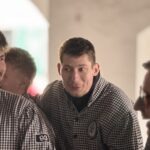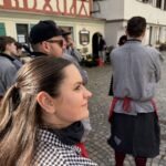 - Die Bluse: Bestehend aus feinem Leinen, schwarzgrauemKaromuster. Einheitlich sind auf dem linken Oberarm gut sichtbar die Laufnummer sowie Funktion (Zunftrat, Zunftmeister) angebracht.